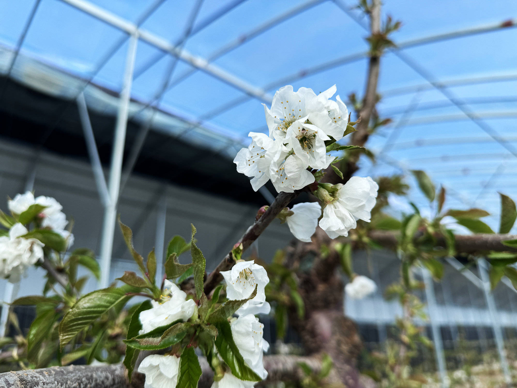严冬料峭,年味渐浓。当山野的残雪尚未消融,位于张家川镇刘家村的张家川县现代果业财产园内却早已是另一番六合。一树树樱桃花纯洁如雪,缀满枝头,轻风轻拂,花瓣轻轻颤动,仿佛无数蝴蝶正在绿叶间游玩飘动,将新春的序曲愉快地奏响正在充满但愿的郊野上。
